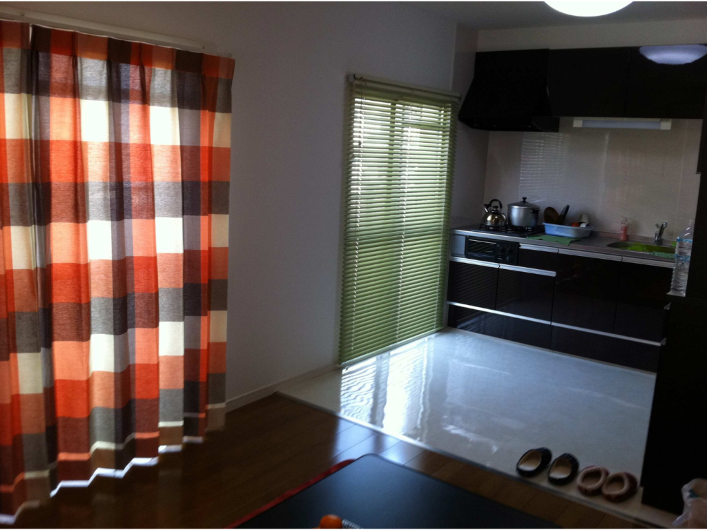 コンパクトなシステムキッチンを新たに設置。床、壁の張り替え、カーテンやブラインドとトータルにご提案させていただきました。お住まいと暮らしに関すること、何でもご相談ください。