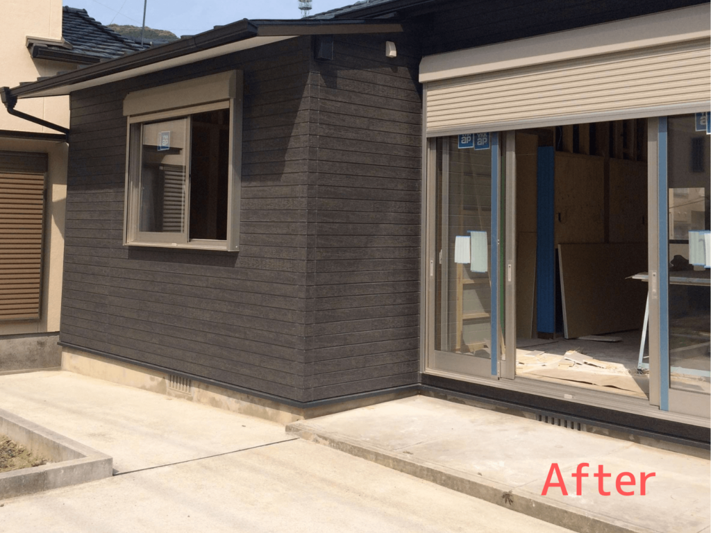 サイデイング工事、サッシ工事の様子です。BeforeとAfterを比べてみました。